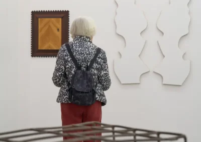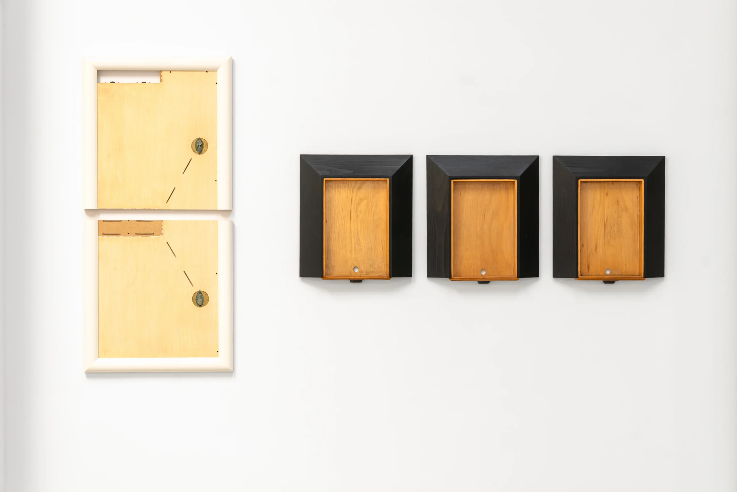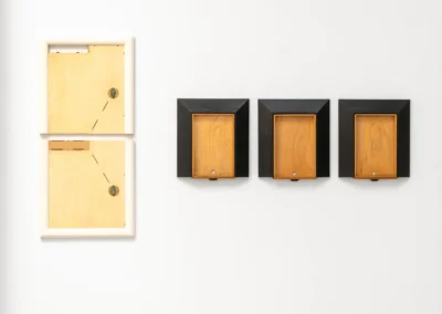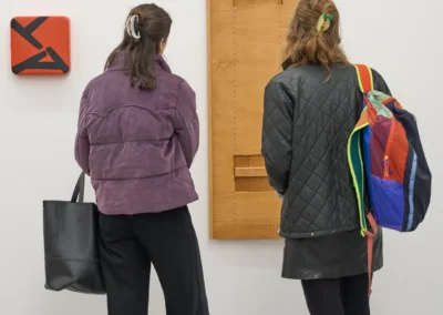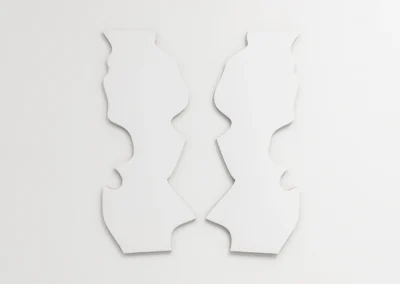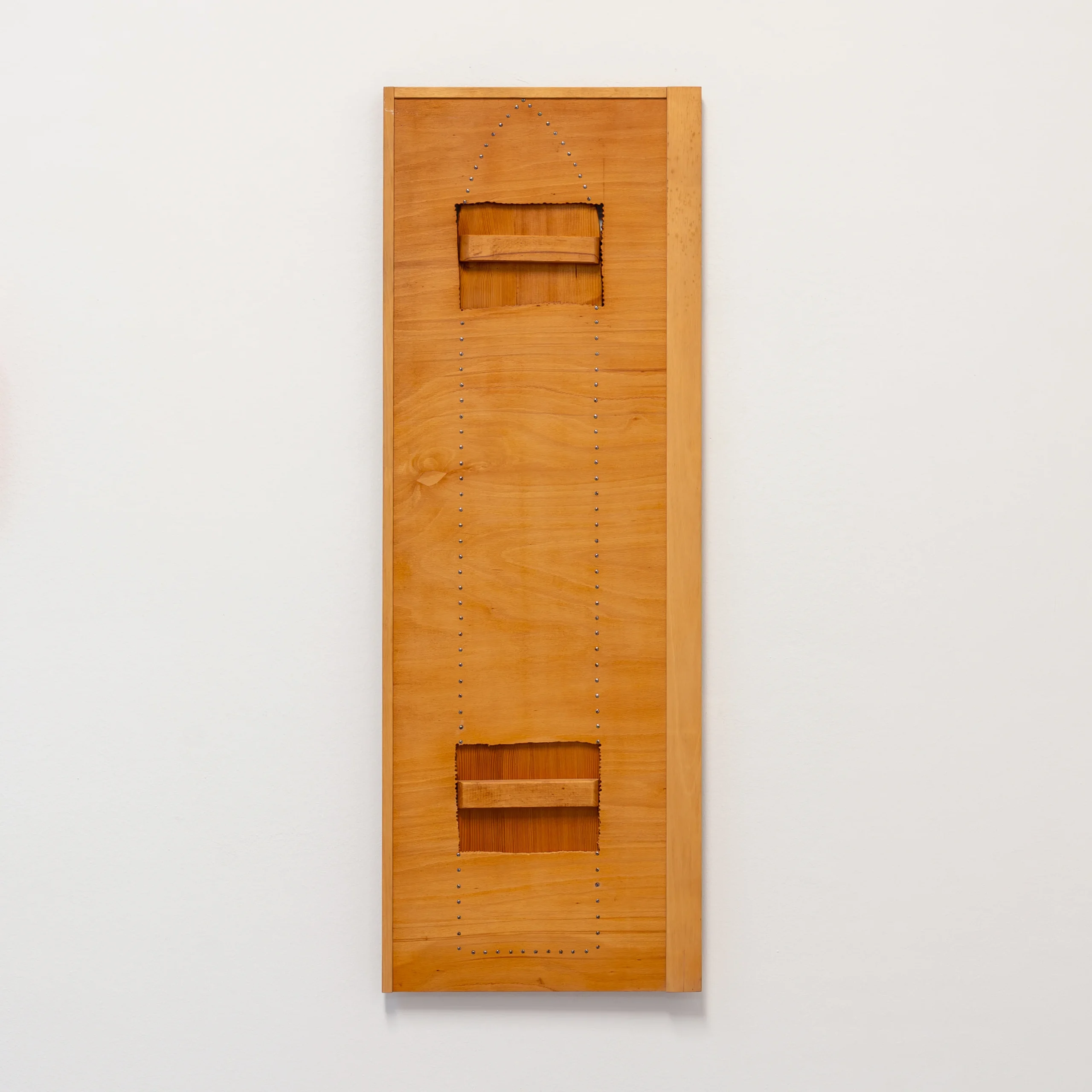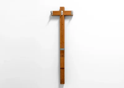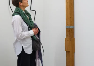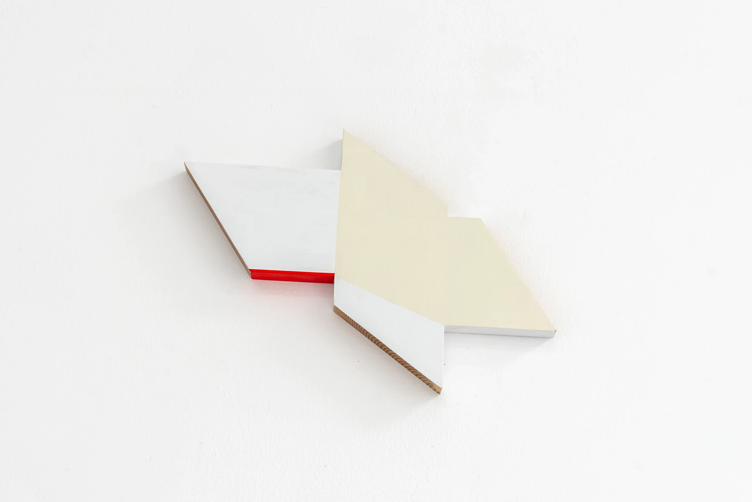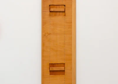 With playful easy she weaves narratives from seemingly random points of departure. A shadow, plywood, scaffolding plank, brick, asbestos cladding, household furniture, her own body or an ironing board, with a twist they tell a new tale. Nothing is left to chance, every minute detail carefully considered. Aesthetic values weigh as much as symbolic references, cut angles, choices of colour or paint, artisanal proficiency or a piece’s provenance.