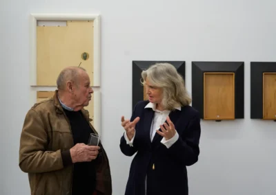 Inserting, collaging, chiseling, nailing, painting, hammering, sawing or sewing – in limitless variations infuses Erinna König her compositions with deep meaning. Eloquently she merges contrasts and paradoxes into one idiomatic language both abstract and figurative.